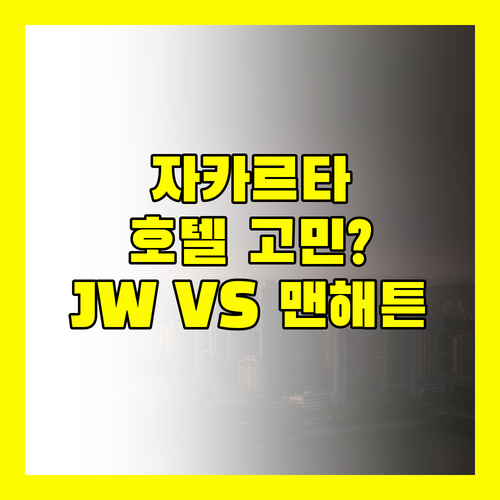 자카르타 여행, 숙소 고민을 해결해 드립니다. 저는 JW 메리어트, 메가 쿠닝안, 맨해튼 호텔을 직접 경험했습니다. 위치, 가격, 시설을 꼼꼼히 비교하여 여러분의 여행 목적에 맞는 최적의 호텔을 추천해 드릴게요.